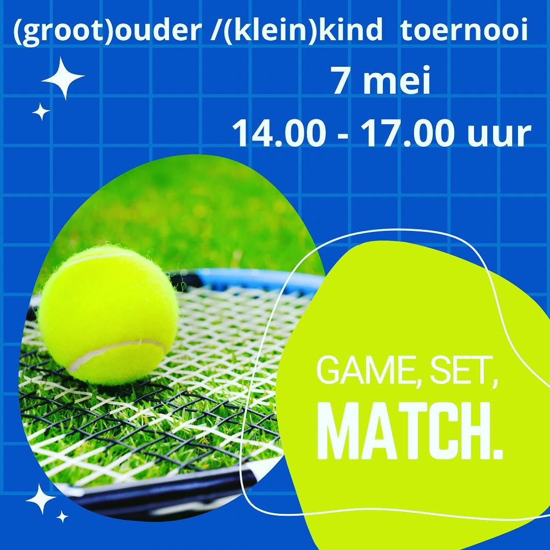 Op zondag 7 mei van 14.00-17.00 uur organiseert de JC een (groot)ouder/(klein)kind toernooi. Iedereen kan meedoen, als maar 1 van het koppel lid is van TC West-Voorne.