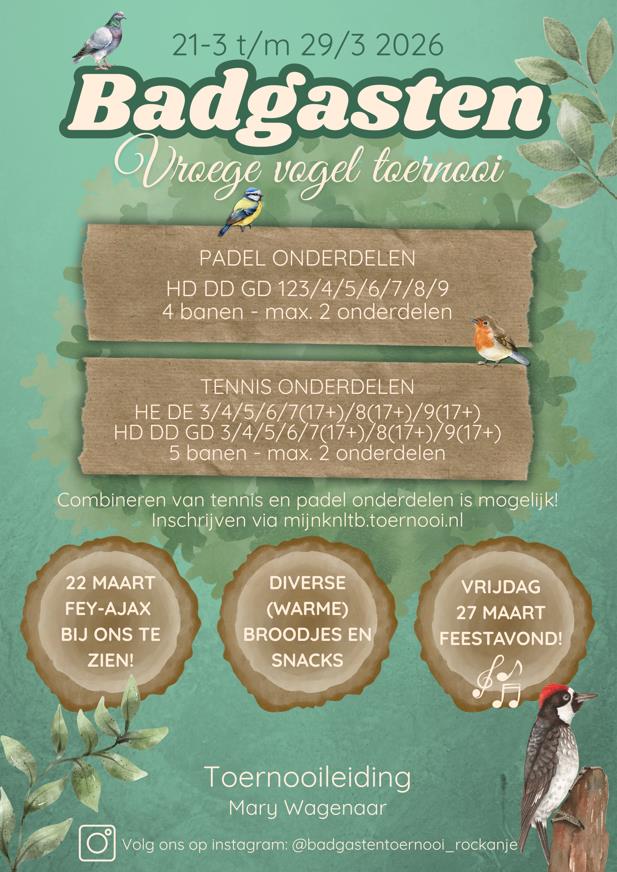 We gaan weer een heerlijk toernooi organiseren! Lekker vroeg in het jaar weer, voor de vroege vogeltjes onder ons. Dus vooral niet je snaveltje houden en bel/app en stuur die postduif door naar al je padel en tennismaatjes.